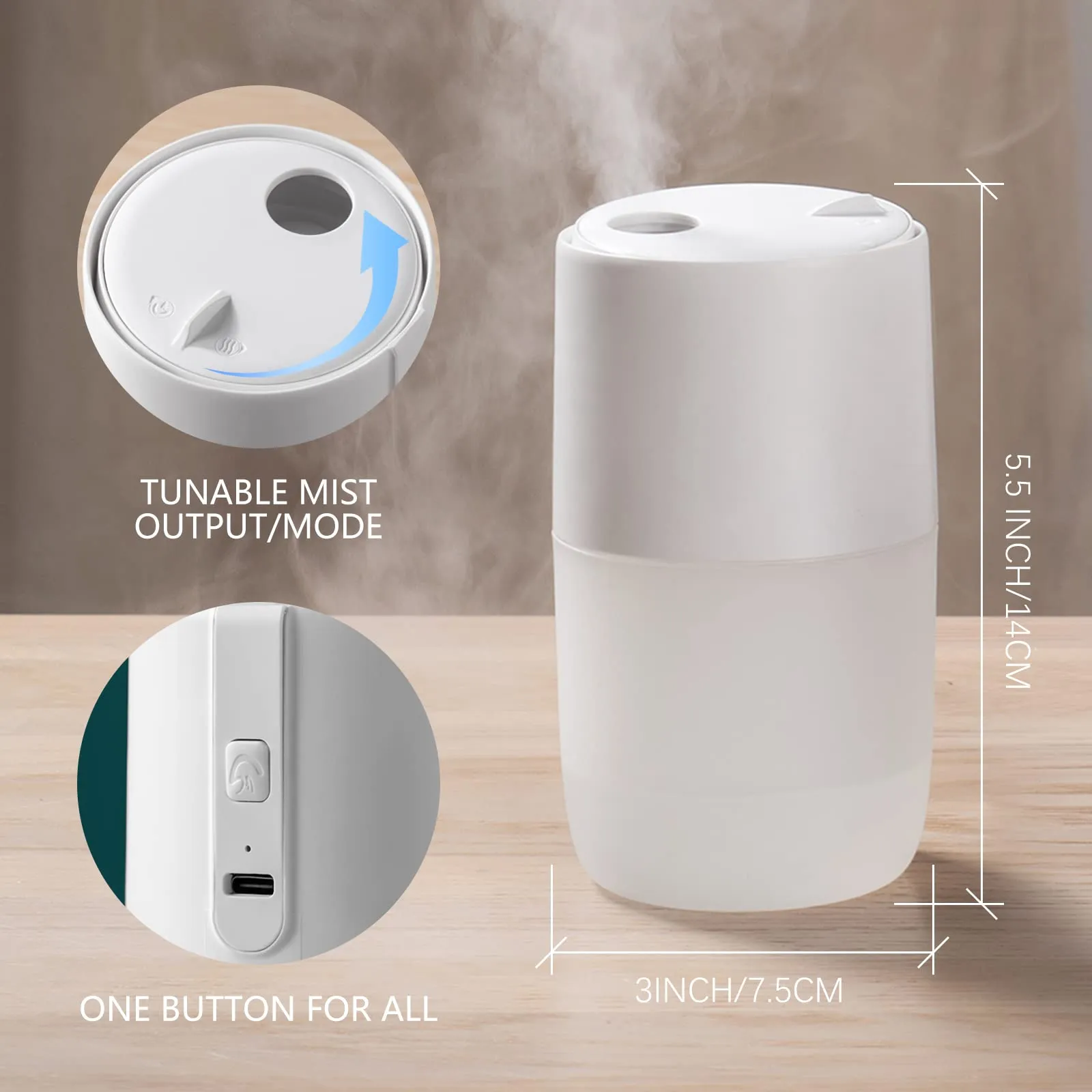 - 【Compact Size & Easy to Carry】: This mini humidifier is designed to be portable. A full-loaded humidifier weighs only about 1 lbs. and can easily fit into your handbag or backpack, making it capable of every scenario, and a decent choice for your small bedroom, office, traveling, or car.